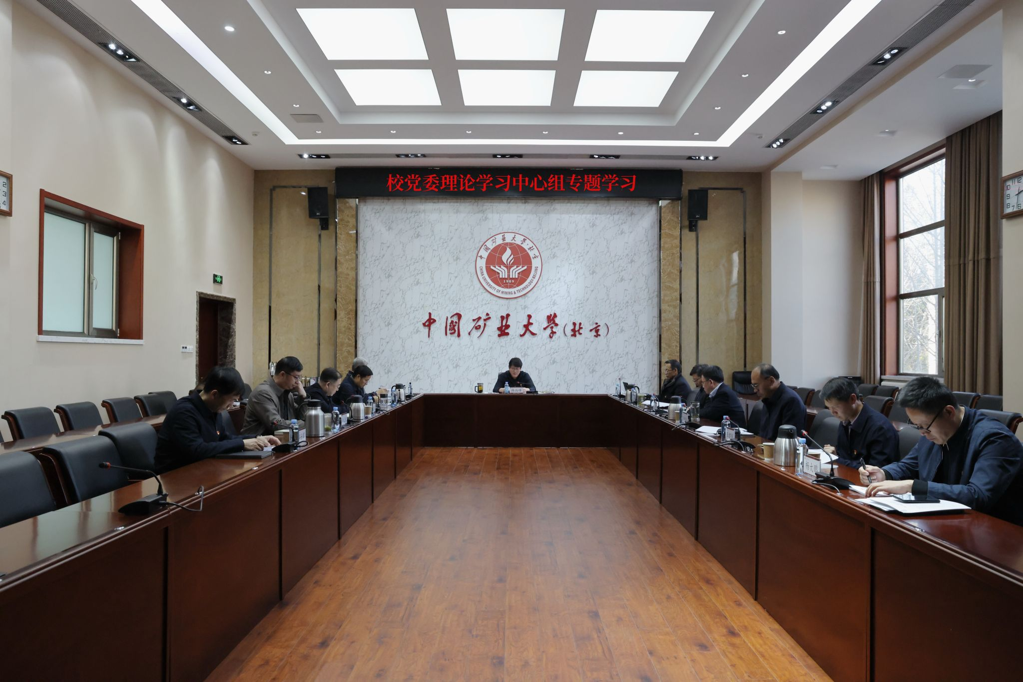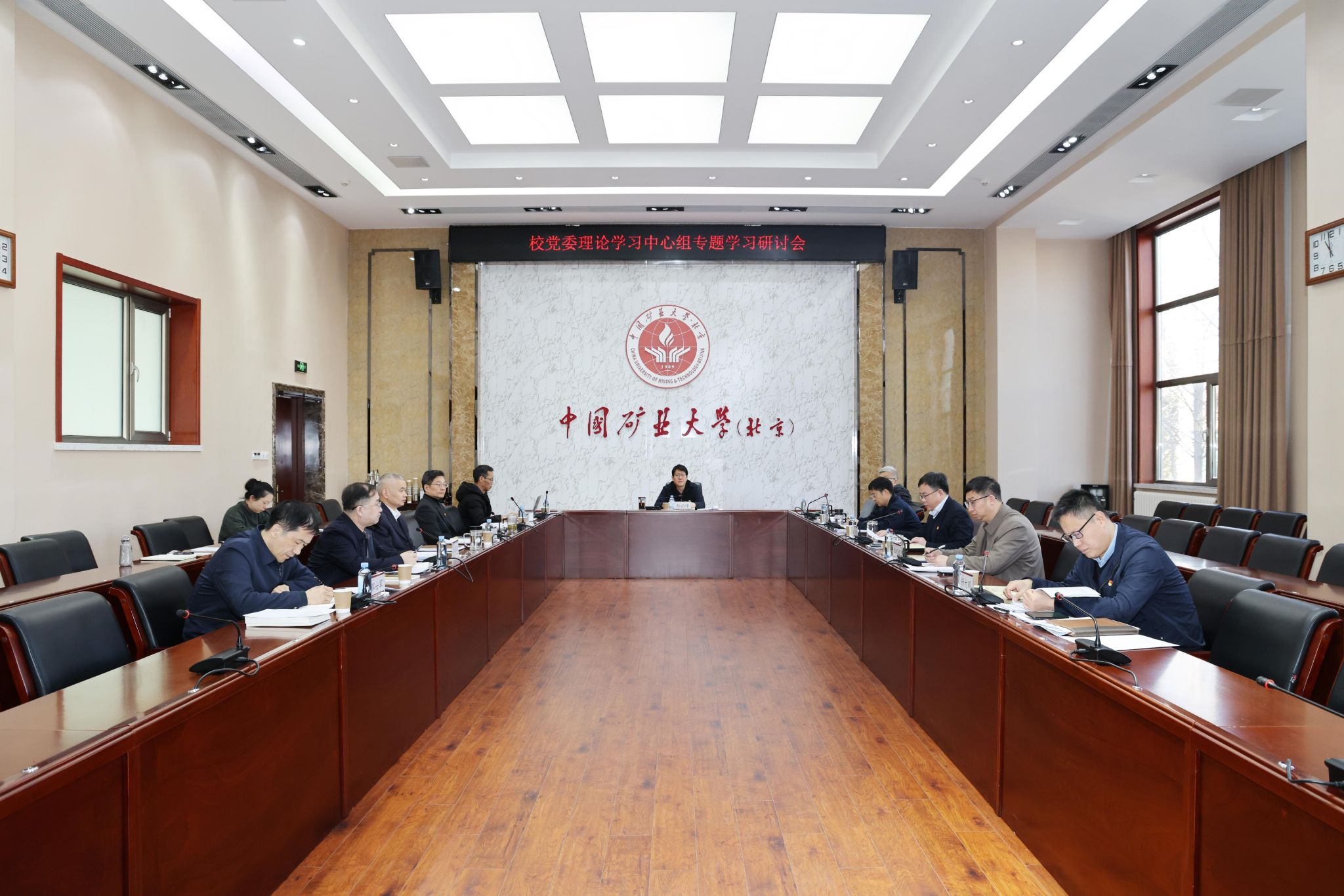 12月29日上午,校党委理论学习中心组在1号办公楼200会议室,以“深入学习贯彻习近平法治思想,全面提高学校依法治校水平”为主题,围绕学习习近平对全面依法治国工作作出重要指示、《习近平法治文选》第一卷、《习近平法治思想学习纲要(2025年版)》等内容,进行专题学习研讨。校党委书记韩尚峰主持学习会。中心组成员参加会议。