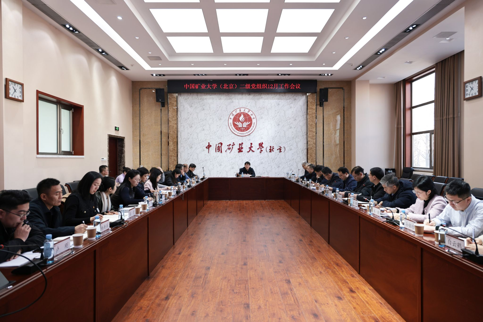 2025年12月31日,学校在一号办公楼200会议室召开二级党组织月度工作会议。校党委书记韩尚峰,校党委副书记安宇,副校长谭凯,校党委副书记、纪委书记魏名山出席会议,党群主要部门、各二级党组织负责人参加会议。会议由安宇主持。